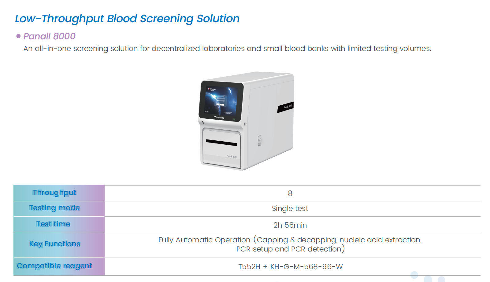 Broad subtype coverage:HBV A-H, HCV 1-6, HIV-1 M/N/O and HIV-2 RNA.